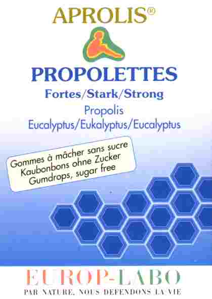 Composition : miel (56 %), eau, extrait de propolis (10 %), glucose, gomme d'acacia, glycérophosphate de magnésium (2,5 %), aloe vera, extrait d'anthocyaniques de sureau (2 %), poudre d'acérola (1 %), sel marin, gluconate de zinc (0,2 %), huiles essentielles de menthe poivré, de cyprès, bêta carotène, (12,5 mg/100 gr), huiles essentielles de sapin blanc, alcool, huiles essentielles d'eucalyptus globulus, de fenouil, de pin douglas, de thym, menthol.